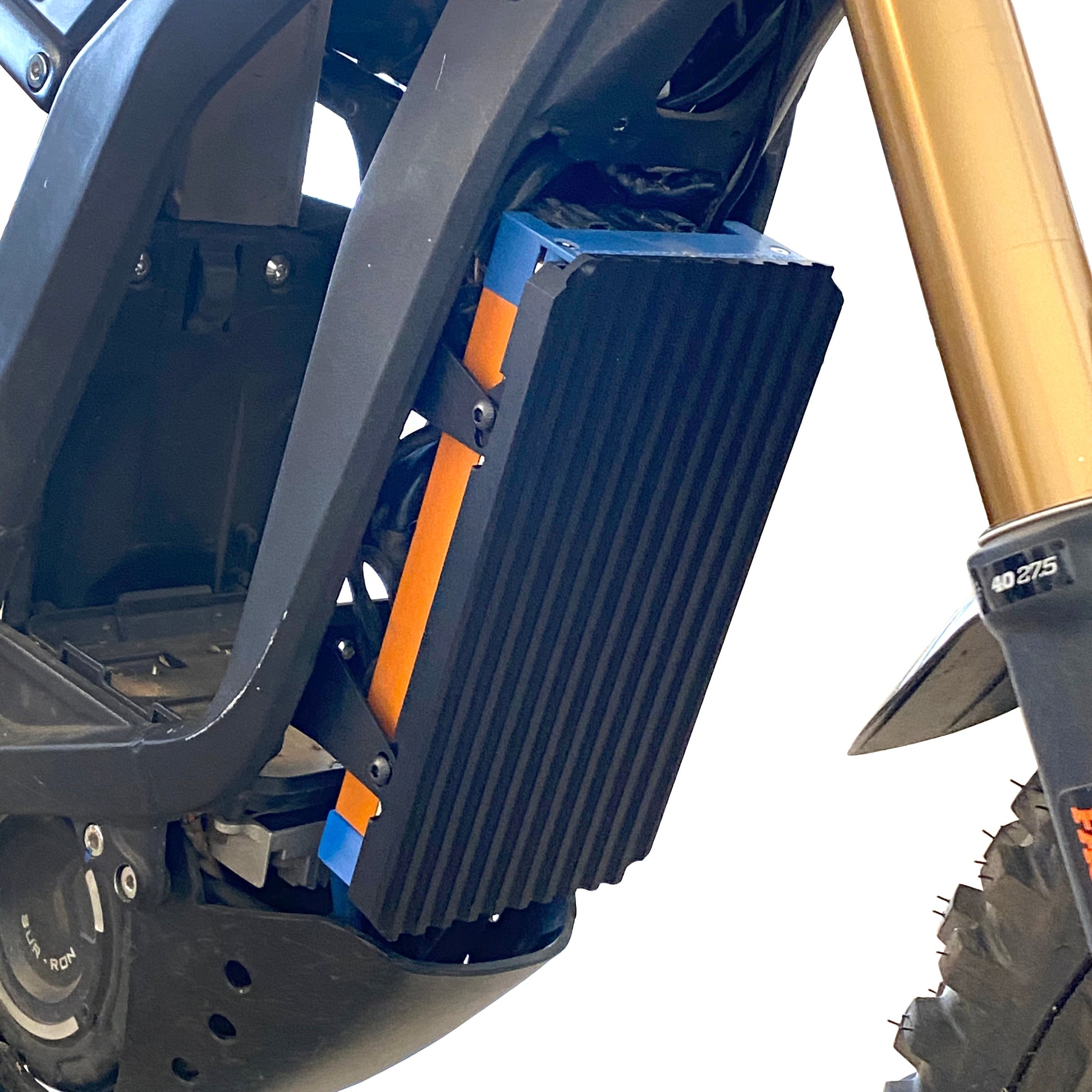 6061 Aluminum CNC machined ASI BAC8000 mounting kit for SurRon. Bracket fully protects the delicate front of the ASI controller from impacts. Mounts to existing holes on the frame with included aluminum mounting arms (no plastic spacers). All parts are type 2 anodized (except Raw Silver). Simple install and includes all mounting hardware.