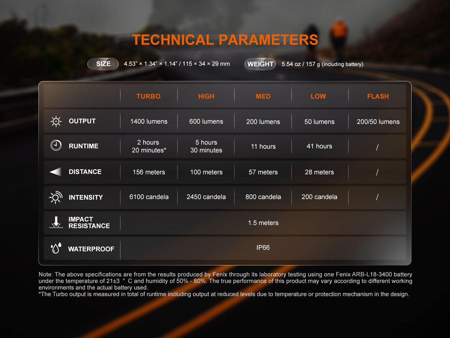 The Fenix BC22R High-Performance Road Bike Light delivers a powerful 1400-lumen output with a broad 512-foot flood beam, ensuring clear visibility while its anti-glare cut-off line protects pedestrians and oncoming traffic for your safety and theirs. Compact and aerodynamically designed, it mounts easily on the top or bottom of handlebars with a quick-release system for effortless use.