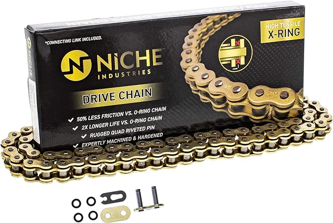 - Expertly Crafted with Quad-Riveted Pins, Hardened Steel Components and Premium NBR X-Rings, Niche X-Ring Drive Chains are Ultra-High-Performance Alternative to your OEM Chain