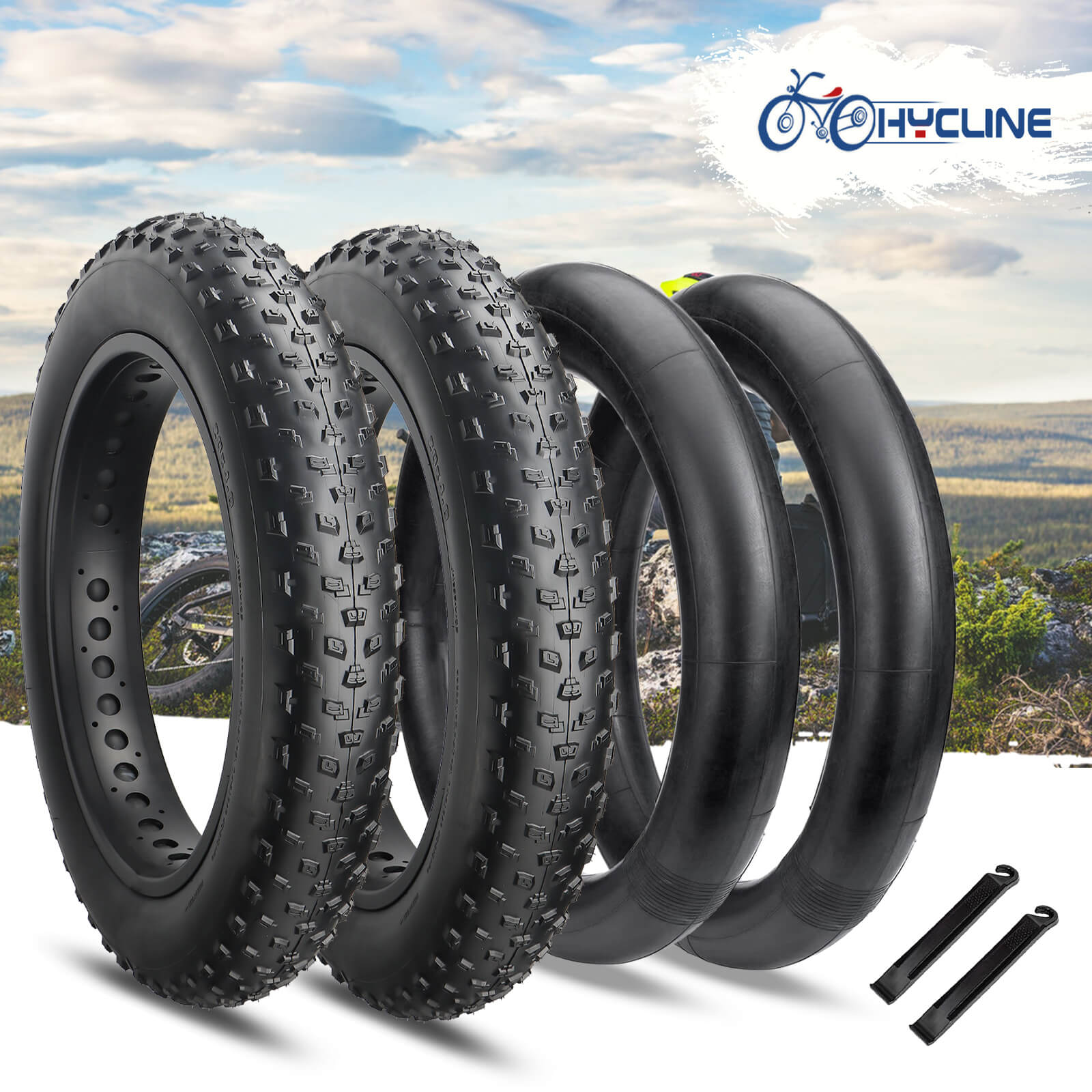 Hycline Tumble Kevlar 20x4 fat bike tires - A durable and puncture-resistant option for your electric bicycle, snowmobile, or mountain bike. Measuring 20×4 inches, this tire has a TPI of 60 and can be inflated up to 30 PSI—the best air pressure for off-road and country road riding